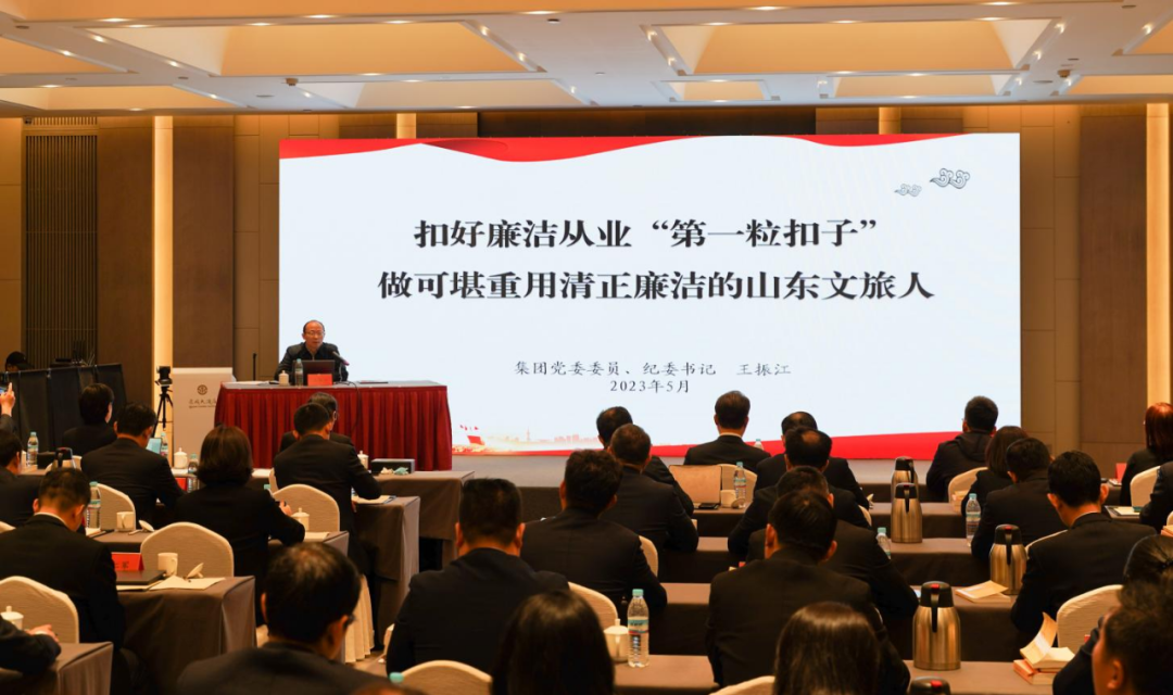 为深入开展学习贯彻习近平新时代中国特色社会主义思想主题教育,推进集团全面从严治党向纵深发展,提高党员干部廉洁自律意识,筑牢拒腐防变思想防线,5月5日,山东文旅集团党委委员、纪委书记王振江到山东文旅酒店集团讲授廉洁党课。