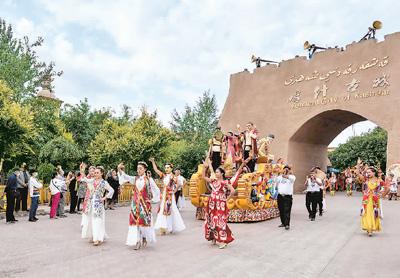 新疆喀什古城景区近日举行开城仪式,欢迎游客入城游览。
