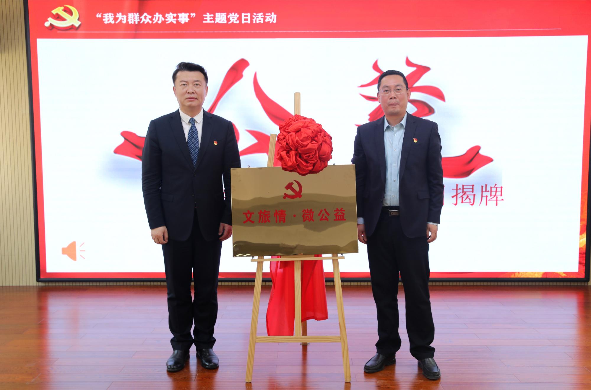 2021年,山东文旅酒店集团党委发起“文旅情 · 微公益”志愿服务项目,组织所属各党支部发挥文旅产业优势,深入开展社区“双报到”,助力美好生活,共建幸福家园。活动中,山东省国欣文旅集团首席客户官,山东文旅酒店集团党委书记、董事长李浩与千佛山街道党工委副书记、办事处主任王新共同为项目揭牌。