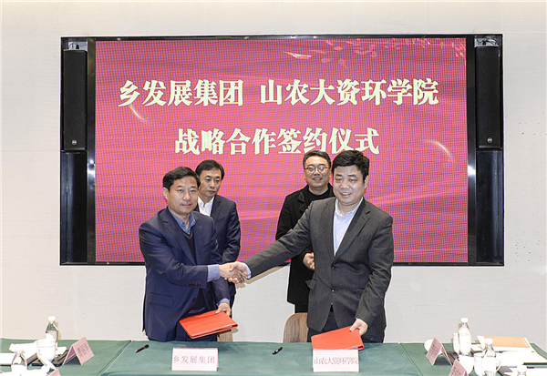 张建峰表示,实施乡村振兴战略,是党的十九大作出的重大决策部署;打造乡村振兴齐鲁样板,是习近平总书记对山东的殷切期望。乡发展集团深入践行“667”乡村振兴发展模式,积极投身我省乡村振兴齐鲁样板建设,先后成立了山东省乡村振兴齐鲁样板研究院,打造乡村振兴智力引擎;成立了鲁商乡村振兴产业基金,创新投融资模式;聘任了中国工程院院士、著名能源与环境专家陈勇,合作建立了乡村振兴院士工作站,开展有机固体废物能源化与资源化利用等技术的研究利用,有关科技成果已在九女峰成功转化。山农大资环学院教学资源雄厚,在农业资源管理与利用、资源环境监测与分析、土地资产经营与管理等领域具有较高的理论水平。此次签约,双方将在构建人才共享机制、搭建教研实训+社会实践双基地、打造横向课题教研室以及“产、教、研、培”技术服务平台方面进行合作,共同开创乡村振兴新局面。