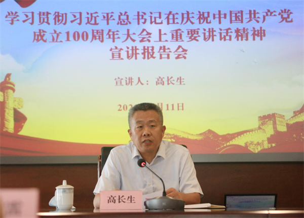 高长生在报告中深刻阐述了习近平总书记“七一”重要讲话的重大意义,学习习近平总书记重要讲话,加深了我们对中国共产党成立的历史意义、深远影响的认识,加深了对中国共产党百年奋斗的光辉历史和伟大功绩的认识,加深了对中国共产党百年奋斗的宝贵经验和根本要求的认识,加深了对全面建成小康社会、顺利实现第一个百年奋斗目标重大意义的认识,加深了对在新征程上夺取全面建成社会主义现代化强国新胜利的信心和决心的认识。讲话中首次提出了实现中华民族伟大复兴是贯穿中国共产党百年奋斗主题的重大观点,集中阐释中国共产党一百年来创造的四个伟大成就,首次提出并阐释了伟大的建党精神,系统地总结了中国共产党在百年奋斗中积累的“九个必须”的宝贵经验。