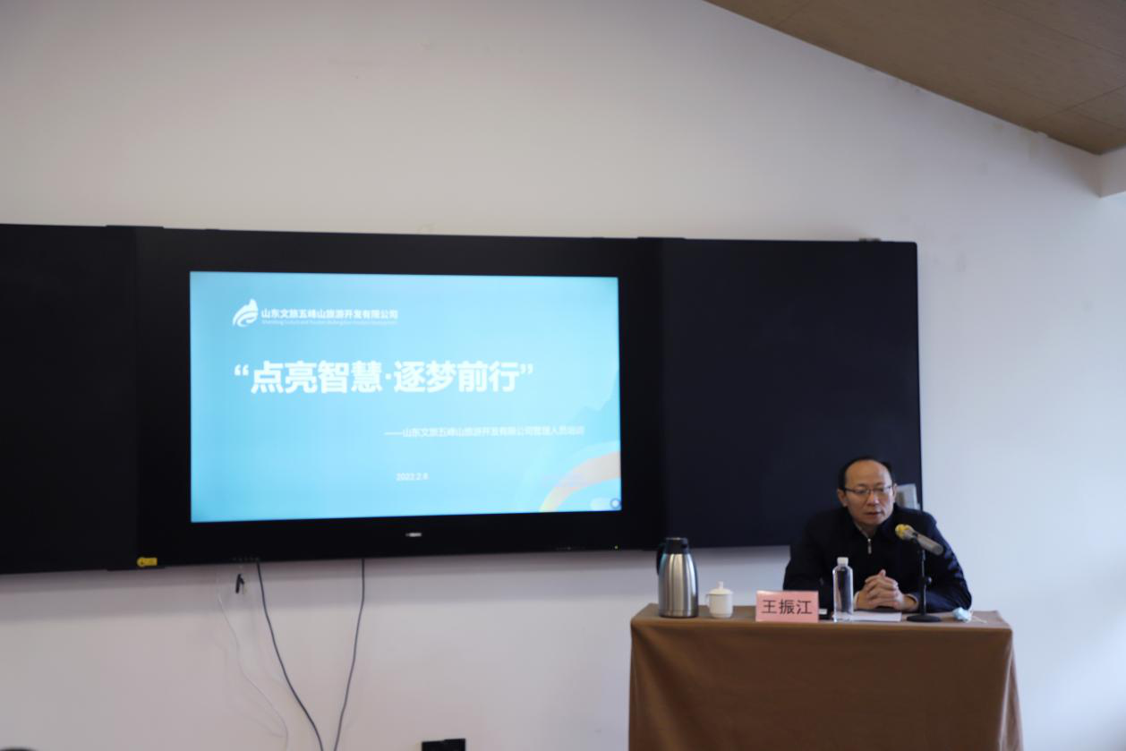 五峰山公司在研究院开展了“点亮智慧·逐梦前行”管理人员培训。山东文旅集团党委委员、纪委书记王振江到场指导并进行授课,五峰山公司党总支书记、董事长刘伟主持开班仪式。