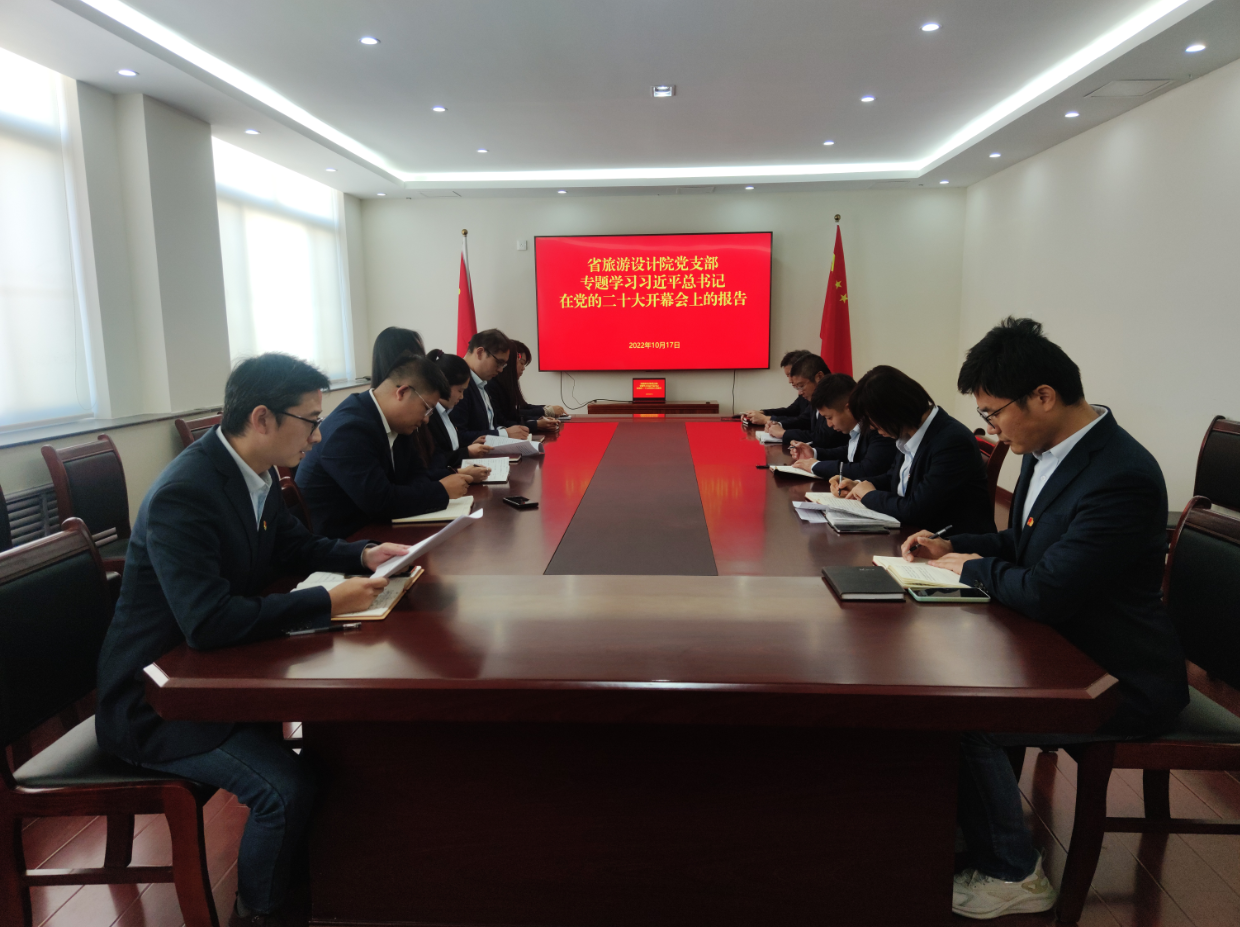 10月17日,省旅游设计院党支部召开集体学习会,专题学习习近平总书记在党的二十大开幕会上的报告,全体党员、中层干部、入党积极分子以及入党申请人参加会议,并作交流发言。