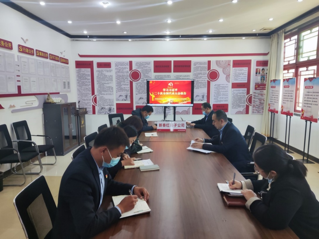 10月17日下午,新泰红哨子公司党支部组织党员深入学习研讨二十大报告内容,把学习报告内容作为支部当前首要任务,把党的二十大报告精神学深刻、学透彻,转化为实际行动。