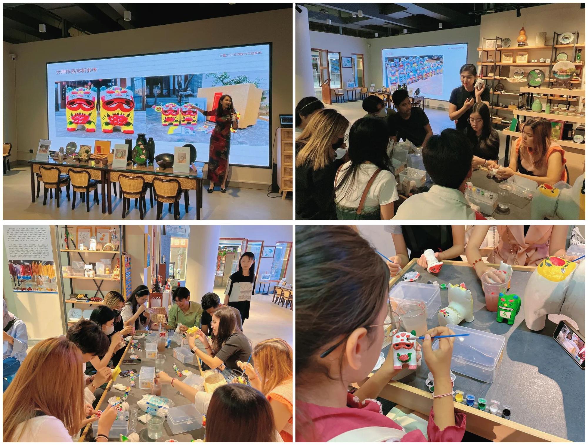 最后留学生们来到济南府体验泥叫虎绘制项目。这是山东最与众不同的非遗泥塑,是潍坊高密的特色民间艺术品。“这只泥老虎肚子里有个哨子,将头部和尾部一推一拉,能发出呜呜的叫声,所以也称泥叫虎。”在研学导师的讲解中,留学生们也慢慢理解了这项非遗技艺的神奇。大家拿起手中的画笔和颜料,绘制属于自己的泥叫虎,也寄托了保佑平安、避免灾邪的美好期待。